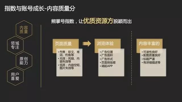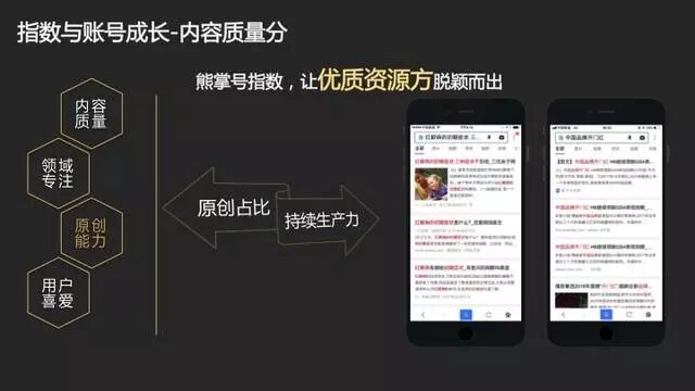 原创能力是内容质量衡量的一个重要指标,由原创内容占比和原创内容持续的生产力组成。原创保护除了作为内容质量分的一个核心指标,也将成为熊掌号一个专有产品权益。