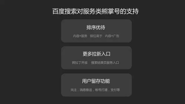 不难想象,自从有了熊掌号之后,对于许多行业都是新机遇,例如装修、教育等这些行业,他们非常依赖用户,当用户留存下来,才能更好地与用户互动。