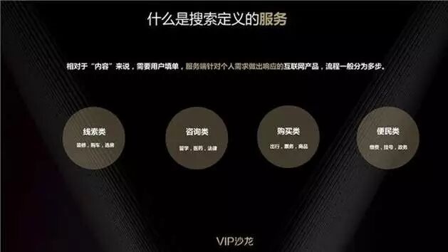 搜索定义的“服务”,相对于“内容”来说,需要有一些用户买单的交互。主要有线索类、咨询类、购买类和便民类四种形式。