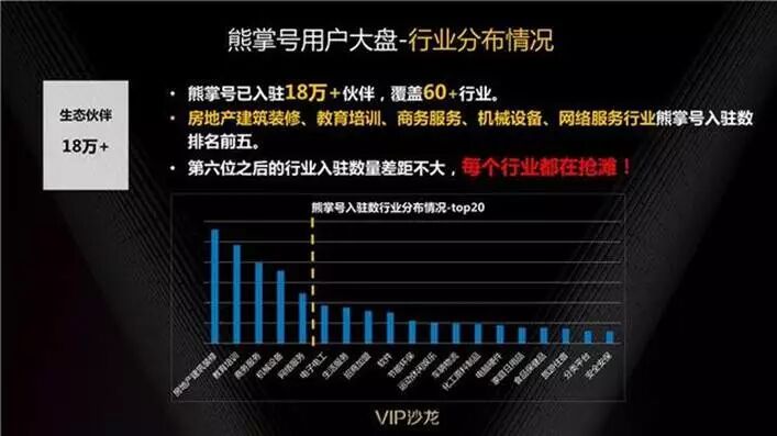 自去年11月熊掌号推出至今,已经有许多资源方通过熊掌号获得流量、获得用户、获得实际收益转化。目前,熊掌号已入驻18万+生态伙伴,覆盖60+行业。其中,房地产建筑装修、教育培训、商务服务、机械设备、网络服务这五大行业熊掌号入驻数排名前五。