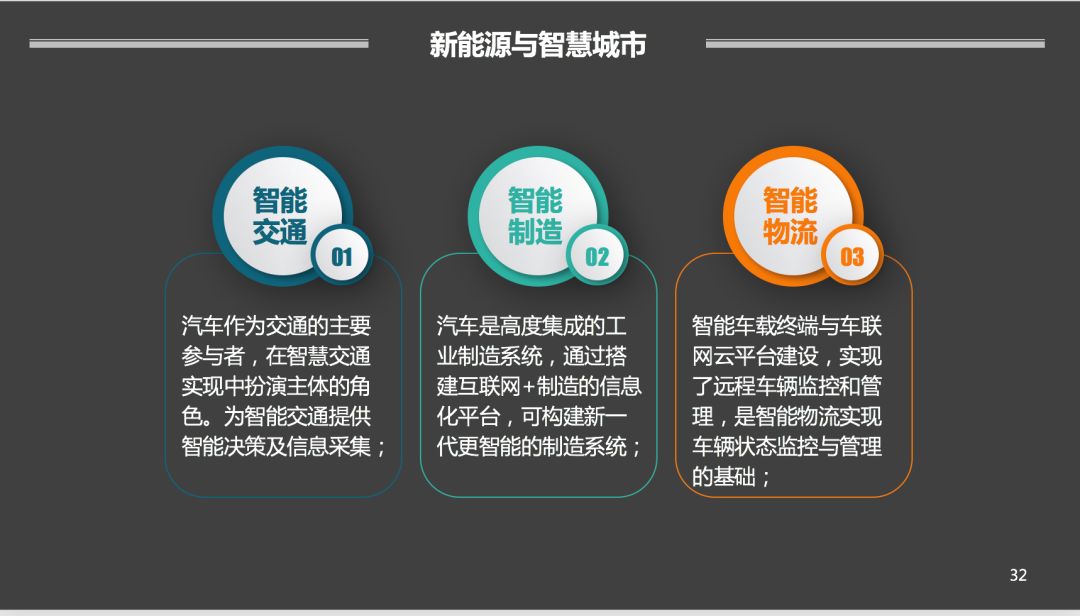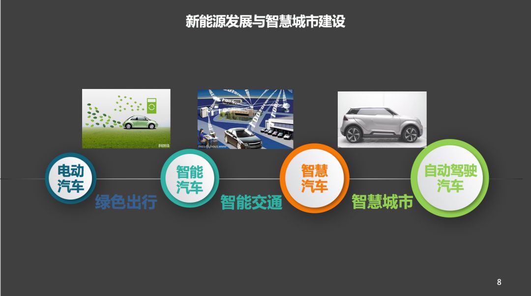 新能源汽车在智能城市里的主要切入点是智能交通,其次是智能制造和智能物流。这里我们主要讨论智能交通。为推动智慧城市的发展,我们建立了多种平台实现这一目标。