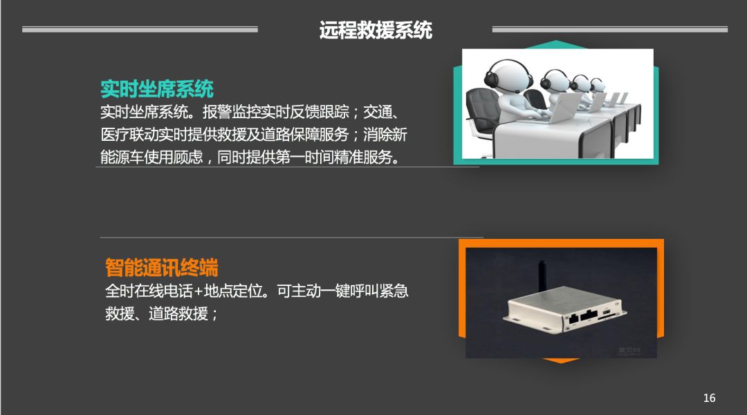 第二块是互联网汽车,我们车上拥有智能车载系统搭配4G网络可以实现网络电台推送和音乐无线量,并且实时提醒能量状态,提供网络支持就近找到充电桩。