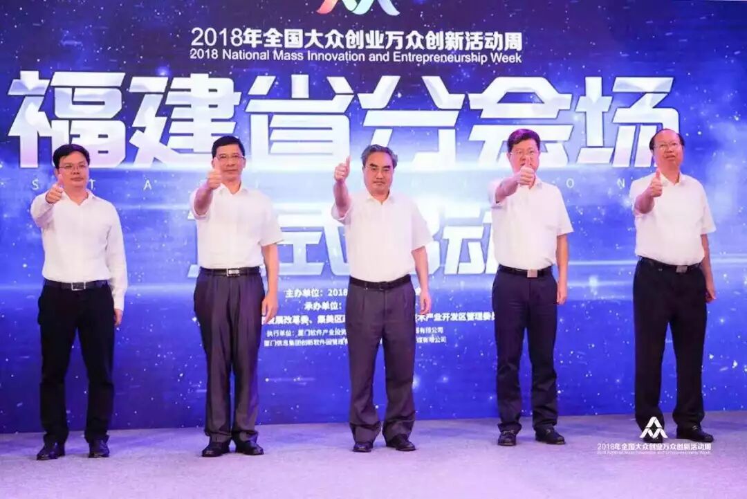 本次活动由2018年福建省双创周组委会主办、厦门市人民政府承办,厦门市发改委牵头、厦门火炬高新区管委会具体实施。福建省政协魏克良副主席、福建省双创活动周组委会领导小组成员单位领导、福州、泉州丰泽区国家级双共创示范基地领导、厦门市人民政府王跃平副秘书长、以及厦门市双创周领导小组成员单位领导,厦门市众创空间、孵化器代表、优秀项目成果展参展企业代表、媒体代表共计300人参与。