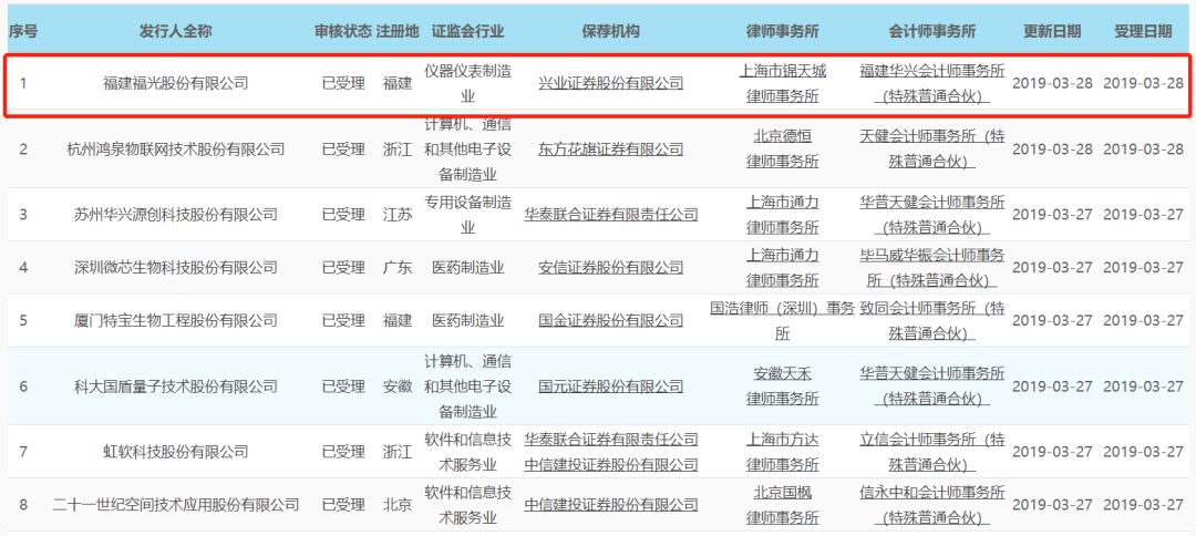 3月28日,上交所科创板上市审核系统公布了新一批科创板受理企业名单,福建福光股份有限公司位列其中,这是继特宝生物之后,福建省第二家申请科创板上市获受理的企业,也是福州“科创板第一股”。福光股份的保荐机构为兴业证券,福光股份是兴业证券首个获得受理的项目。