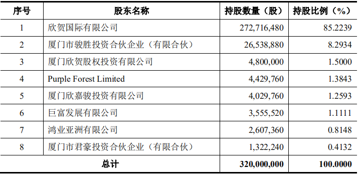 * 发行前,欣贺股份十大股东,来源招股说明书