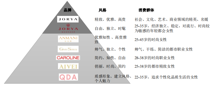 欣贺股份2006年成立于厦门,经过十余年的经营,现已跻身国内品牌女装领军企业之一。公司拥有研发设计团队近四百人,每年研发设计投入超过6000万元,推出超过4000款款式。而公司当前金字塔式的品牌架构,则有效覆盖了18-45岁年龄段的主力消费人群。
