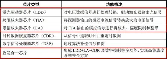 报告期内,优迅股份主要产品包括光通信收发合一芯片、跨阻放大器芯片、限幅放大器芯片、激光驱动器芯片。