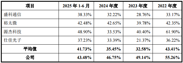 ▲优迅股份与境内同行业毛利率对比 来源:招股书