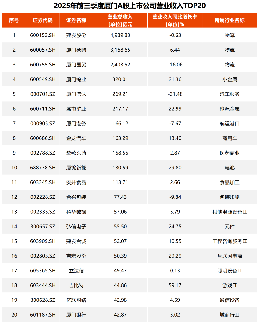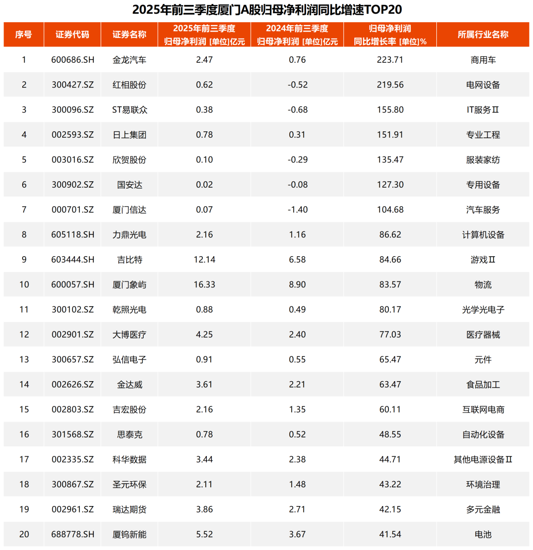 2025年前三季度的厦门A股上市公司业绩表现不俗,在现有上市企业之外,厦门的上市后备军团也正在政策浇灌下快速成长,为资本市场的积蓄力量。