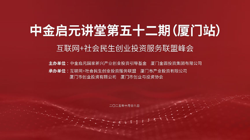 本期活动由中金启元国家新兴产业创业投资引导基金、厦门金圆投资集团有限公司主办,互联网+社会民生创业投资服务联盟、厦门市产业投资有限公司、厦门市创业投资有限公司、厦门市创业与投资协会承办。