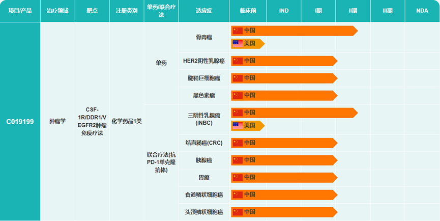 C019199的适应症包含骨肉瘤、乳腺癌等多种肿瘤疾病